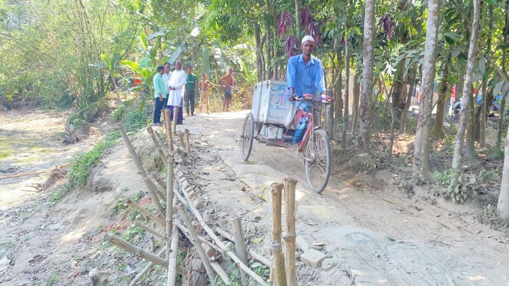 গ্রামের বিনয়ভূষন তালুকদার বলেন, রাস্তাটির পাশে বিশাল দীঘি।প্রতিবছর দীঘির পেটে চলে যায় অর্ধেক রাস্তা। আমরা গ্রামবাসীরা রাস্তার পাশে বেড়া দিয়ে, মাটি ফেলে অনেক ভাবেই ভাঙ্গন রোধ করার চেষ্টা করি। কিন্তু কিছুতেই কিছু হয়না। ফেনুয়া, চেংগাচাল, নোয়া পুকুরপাড় সহ কয়েকটি গ্রামের প্রধান রাস্তা এটি। কোন অসুস্থ রোগী বা গর্ভবতী রোগীর জন্য অ্যাম্বুলেন্স ডুকানোর মত সাধ্য নেই এই রাস্তা দিয়ে।সরকার আমাদের দিকে একটু নজর দিলে মাত্র আধা কিলো রাস্তা সংস্কার ও দীঘির পাড়ে দেয়াল নির্মাণ করে দিলেই এই সমস্যার সমাধান হয়ে যায়।