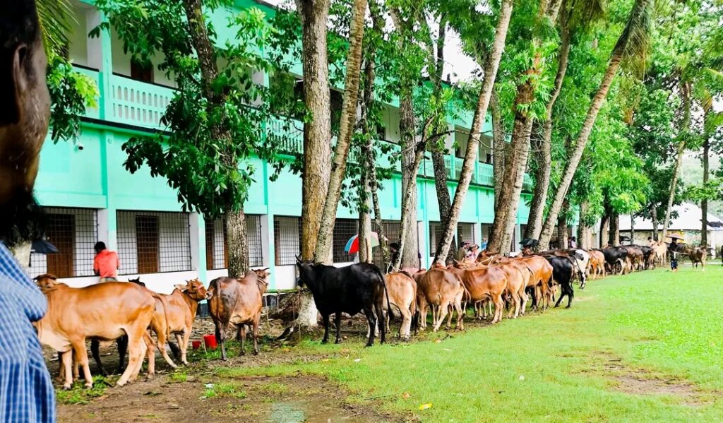 সরেজমিনে ঘুরে দেখা যায়, আড্ডা উমেদিয়া উচ্চ বিদ্যালয়, পয়েলগাছা ডিগ্রি কলেজ,শরাফতি প্রাথমিক বিদ্যালয়,একবাড়িয়া উচ্চ বিদ্যালয় সহ কয়েকটি শিক্ষা প্রতিষ্ঠানের মাঠে কুরবানির গবাদিপশু বিক্রির জন্য বেধে রাখার খুঁটি প্রস্তুত রাখা হয়েছে।এসব শিক্ষা প্রতিষ্ঠানের মাঠে সপ্তাহের দুই থেকে তিন দিন বসবে গরু-ছাগলের হাট। স্কুলের সামনে ও ভবনে উপরেই বড় সাইনবোর্ডে ঝোলানো আছে, বিশাল গরু–ছাগলের হাট।