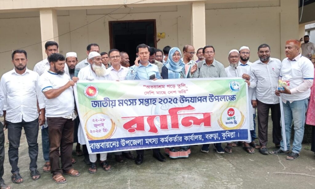 “অভয়াশ্রম গড়ে তুলি, দেশি মাছে দেশ ভরি”— এই প্রতিপাদ্যকে সামনে রেখে কুমিল্লার বরুড়ায় পালিত হয়েছে জাতীয় মৎস্য সপ্তাহ-২০২৫। এ উপলক্ষে উপজেলায় বর্ণাঢ্য র্যালি, আলোচনা সভা, পুরস্কার বিতরণী, মাছের পোনা অবমুক্তকরণসহ নানা কর্মসূচি অনুষ্ঠিত হয়। এছাড়া মৎস্যসম্পদ সংরক্ষণে জনসচেতনতা বৃদ্ধির লক্ষ্যে লিফলেট বিতরণ ও বিলবোর্ড স্থাপন করা হয়।