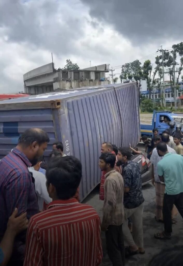 প্রত্যক্ষদর্শীরা জানান, পদুয়ার বাজার ইউটার্ন এলাকায় একটি যাত্রীবাহী বাস উল্টো পথে ঢাকামুখি লেনে প্রবেশ করে রাস্তা পার হওয়ার চেষ্টা করে। এসময় বিপরীত দিক থেকে আসা সিমেন্টবোঝাই লরি বাসটিকে পাশ কাটাতে গিয়ে নিয়ন্ত্রণ হারিয়ে উল্টে যায়। লরিটি তখন প্রাইভেটকার ও একটি সিএনজিকে চাপা দেয়।
