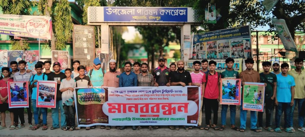 চাঁদপুরে চলমান ২১তম জেলা প্রশাসক গোল্ডকাপ ফুটবল টুর্ণামেন্ট-২০২৫ কে ঘিরে নতুন করে বিতর্ক তৈরি হয়েছে। রেফারিদের পক্ষপাতমূলক আচরণ ও জেলা ক্রীড়া সংস্থার নিয়মবহির্ভূত সিদ্ধান্তের প্রতিবাদে শাহরাস্তি উপজেলায় সর্বস্তরের জনগণের আয়োজনে এক মানববন্ধন অনুষ্ঠিত হয়।